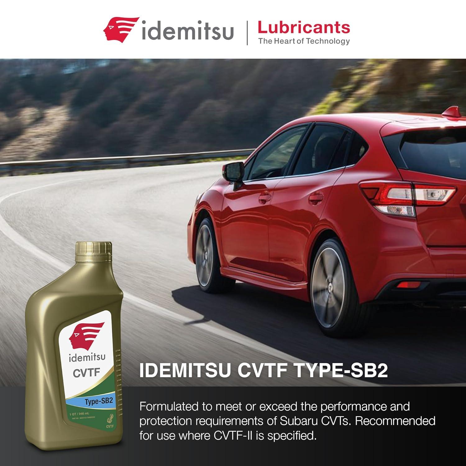 [Contents]: Vehicle lubricant package includes 1 bottle of Idemitsu SB2 CVT oil transmission fluid; 1 bottle of 5 quart (4.7L) CVT trans fluid makes refilling your vehicle more convenient
